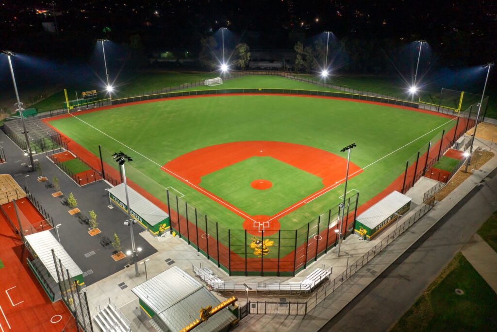 Phase 2 – New Athletics complex (tennis, basketball, baseball, softball) including site/structural concrete, earthworks, underground utilities, synthetic field, paving, chain link fence, ornamental fence, CMU Block, scoreboard, site electrical, landscaping, painting, and prefab buildings.