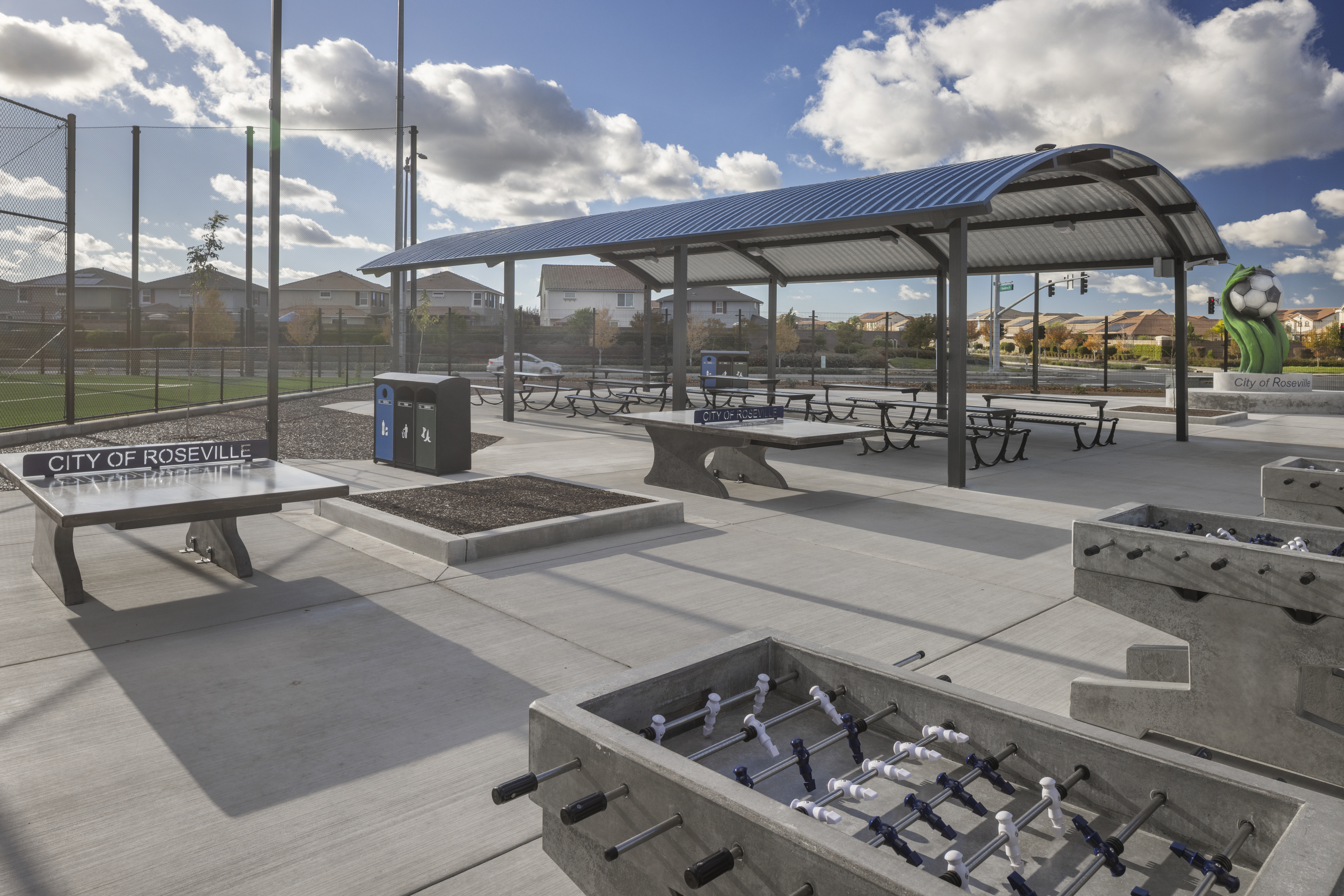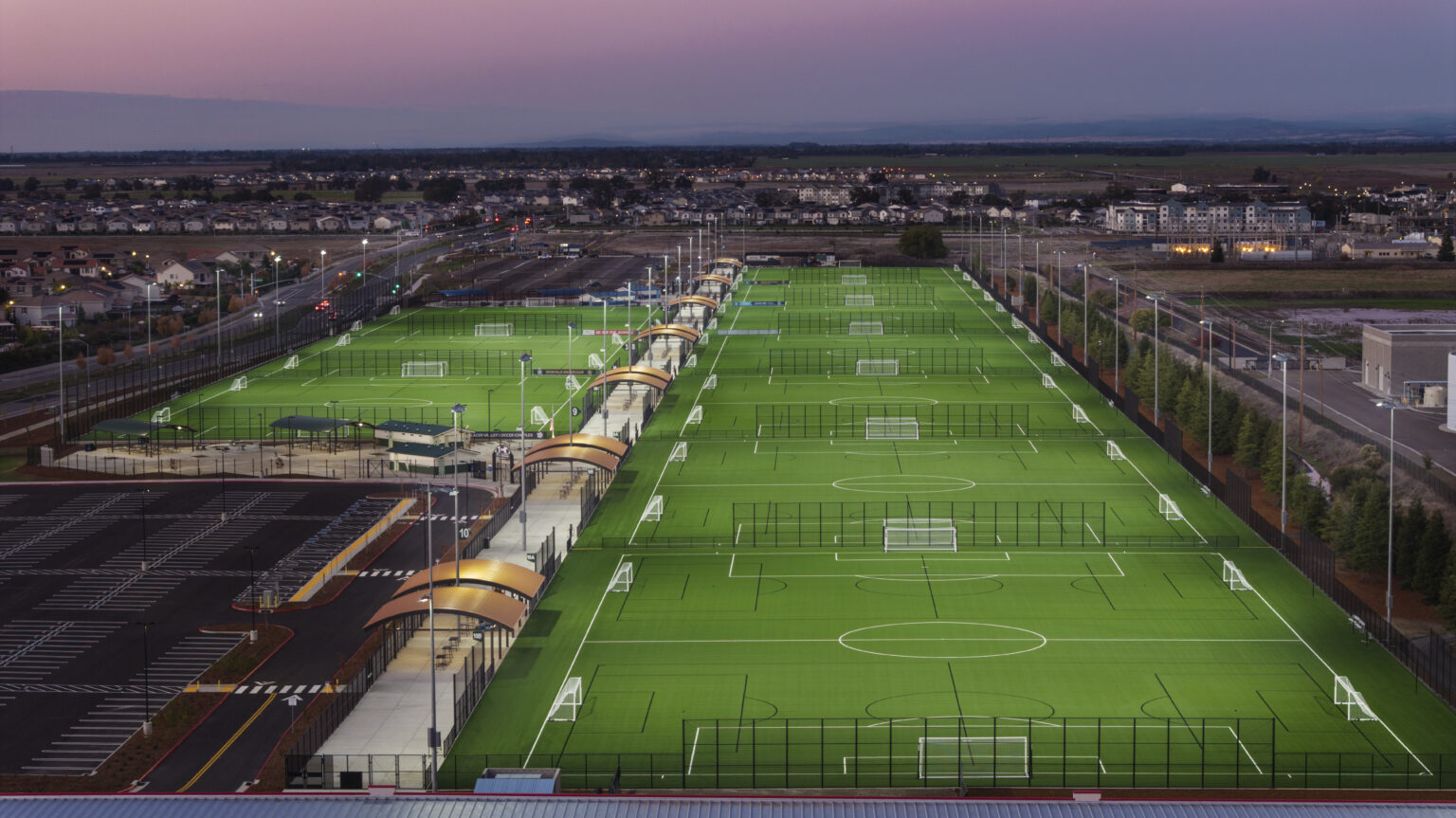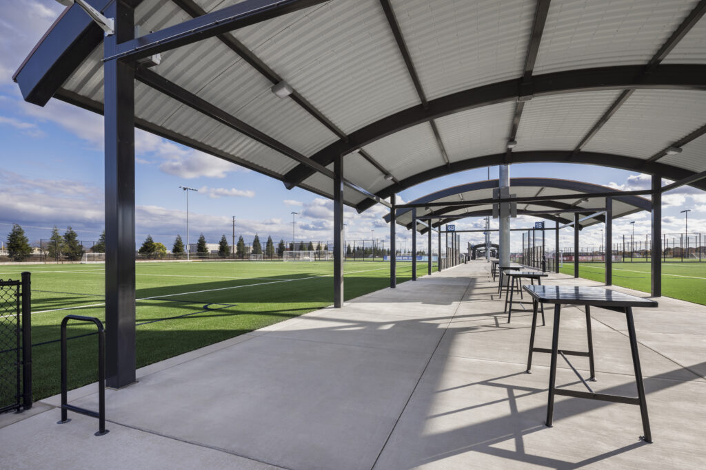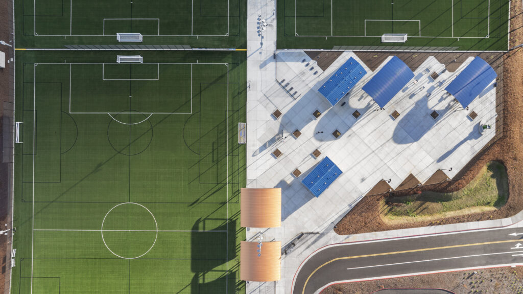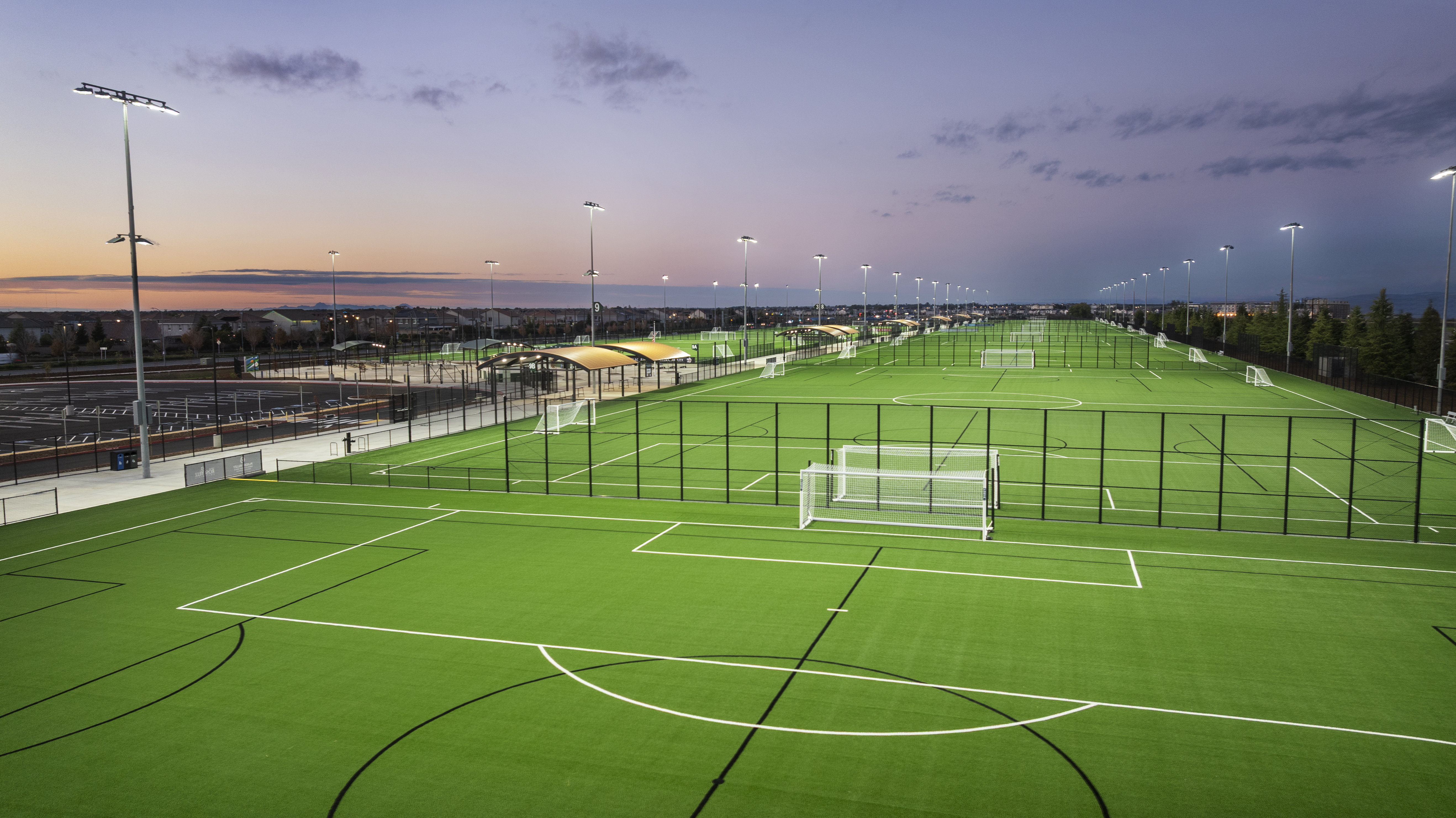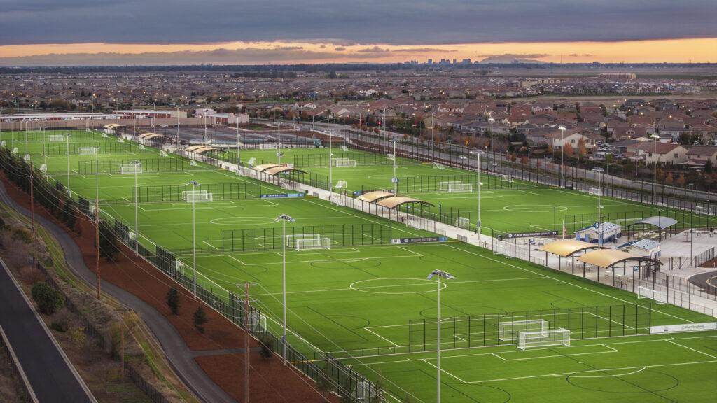 Our completion of the $61M Placer Valley Soccer Complex exemplifies our technical expertise and attention to detail on major projects. The complex features 10 state-of-the-art artificial turf fields with advanced field lighting for all-weather, year-round play, nearly 1,000 parking spaces, two inviting plazas, public art, and a fully accessible playground. We managed every phase, from extensive site development and grading to utilities, field installations, and plaza landscaping—with a clear focus on quality, safety, and long-term sustainability.
