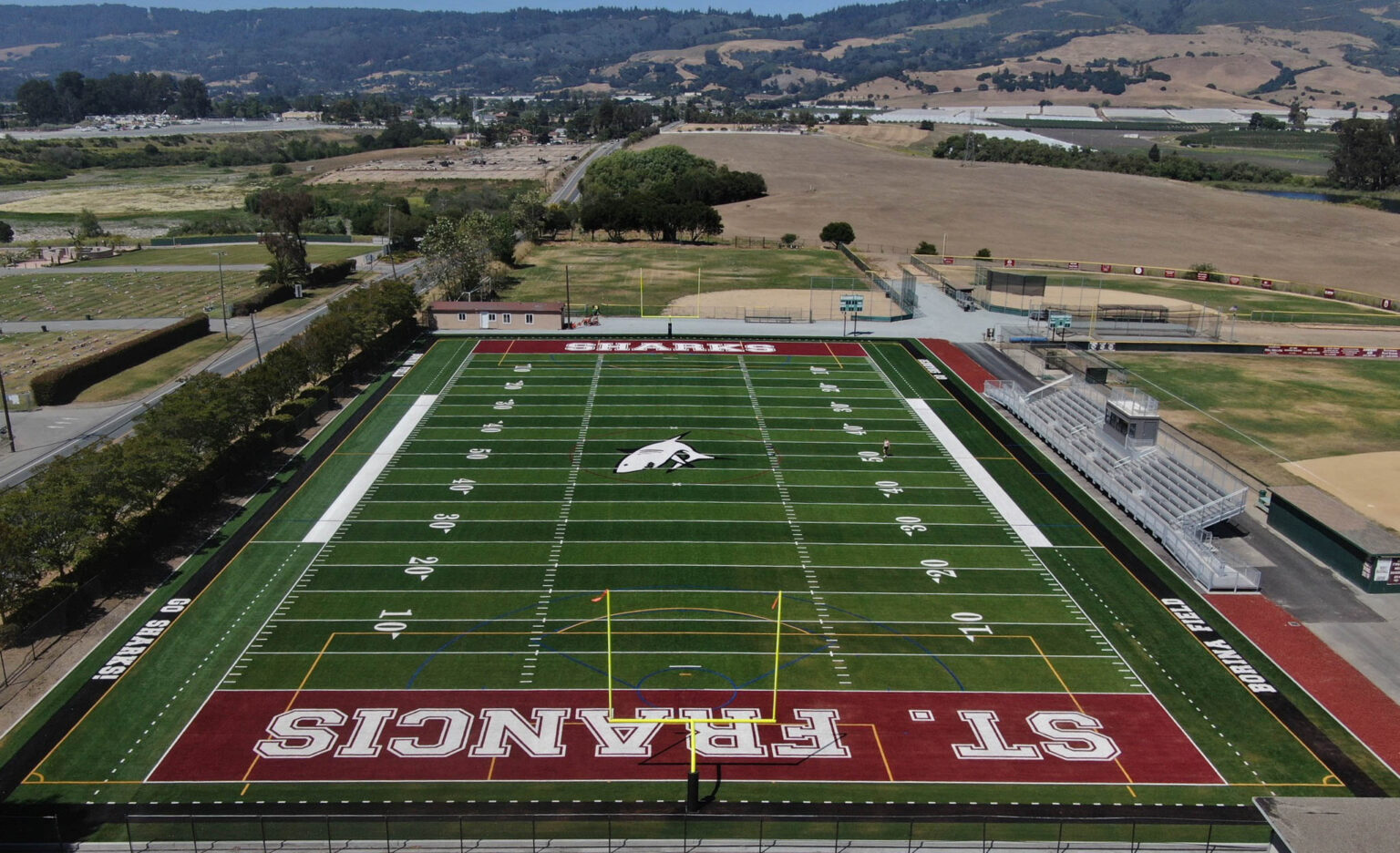 St. Francis High School – Salesian College Preparatory is a Catholic school in Watsonville, CA. The stadium, which includes bleacher seating for 400 spectators on one sideline, is the first phase of a project that will also include a new administration and counseling building. The field will be used for football, soccer and lacrosse games, as well as graduation and arts events.