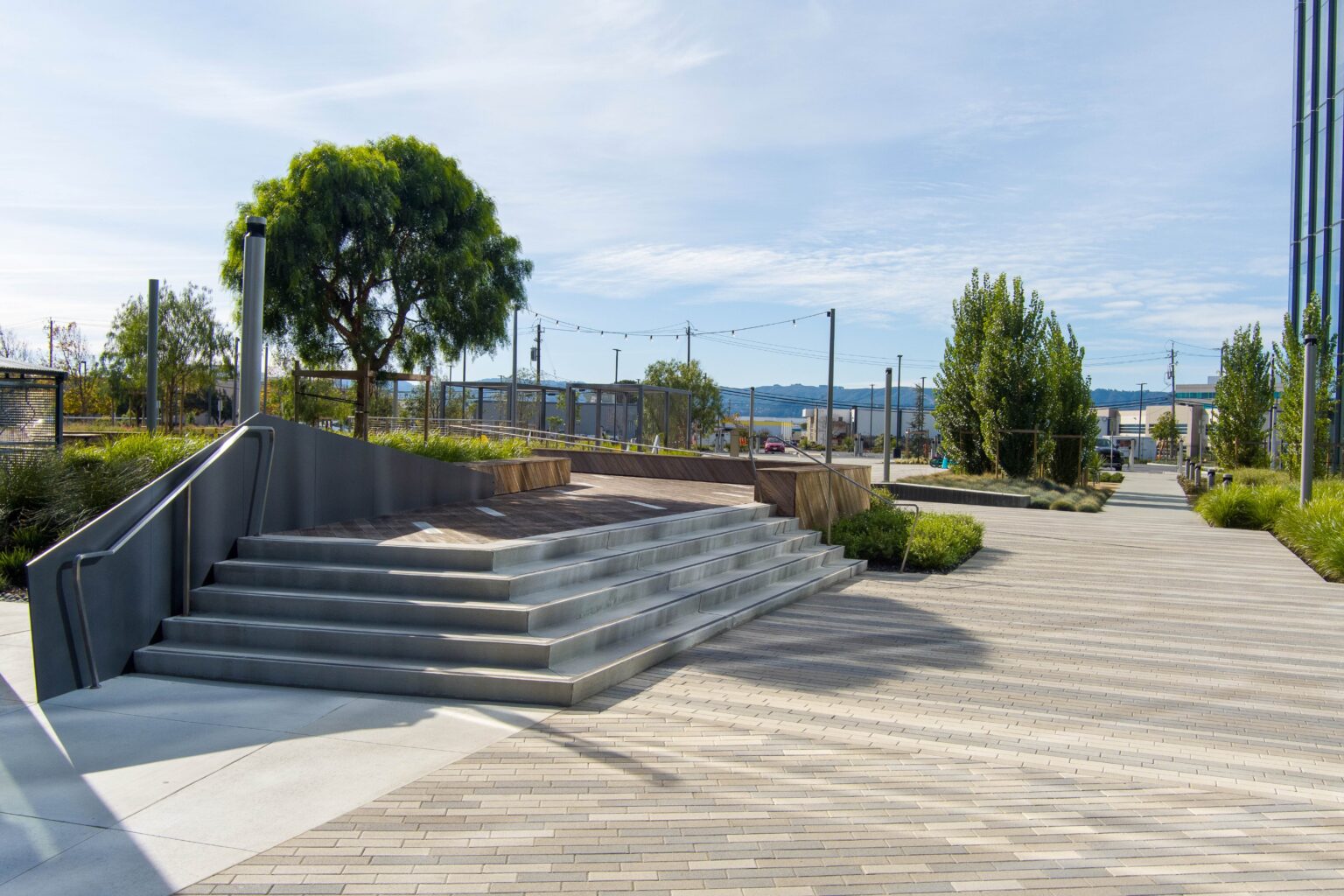 Welcome to the Vantage Amenity Building, Phase 1 within the heart of a vibrant 20-acre biotech campus. More than just a structure, it is a dynamic hub embodying dining, fitness, lifestyle services, and large event space. As the sitework contractor, we are thrilled to help bring to life this architectural marvel that encompasses the landmarks of the ‘Green Line,’ a symbolic connector linking the campus. The project features versatile outdoor dining areas, a lively entry plaza, and site-responsive elements like wind and vine screens, a public art sculpture, and thematic planting areas. Our work involved extensive construction, including 75,000 SF of colored concrete paving, concrete vertical curbs, bollard footings, and much more, reflecting our unwavering commitment to creating progressive spaces that enrich their communities.